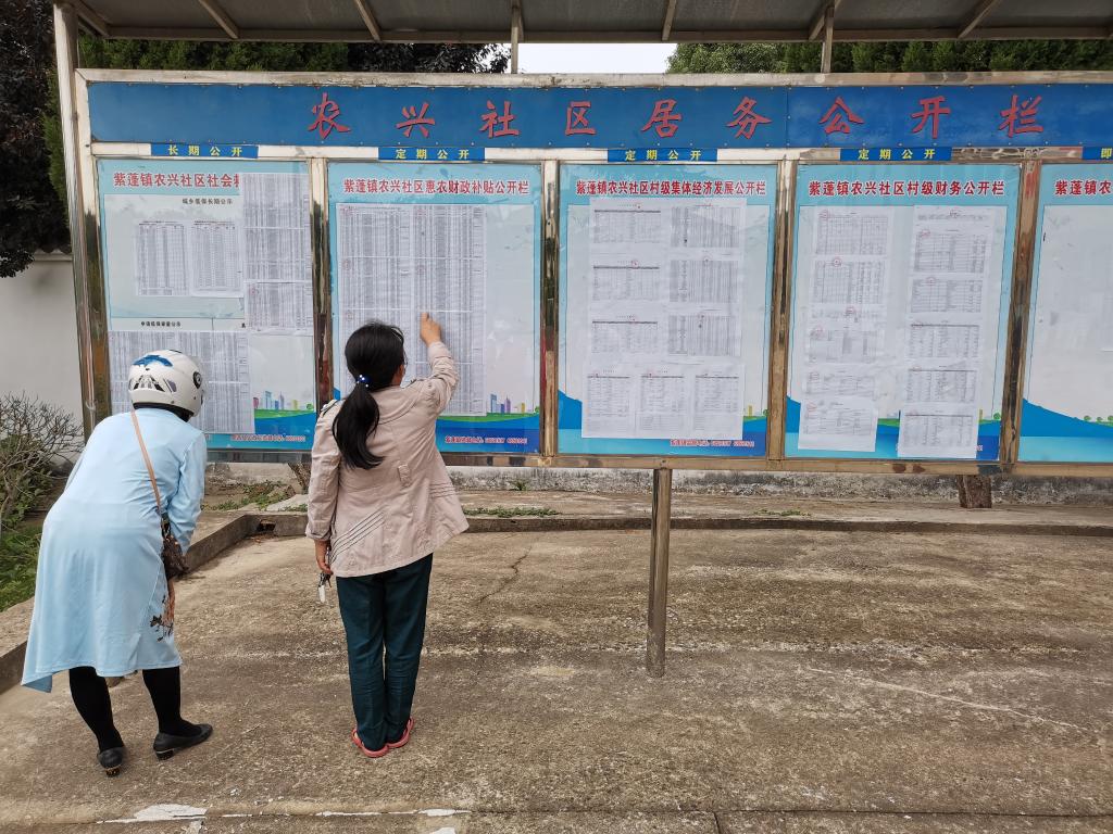 从低保名单、惠农补贴、村级集体经济发展等村务情况,到党员履职、党费收缴等党务情况,再到村级财务收支情况,当地都会定期、及时公开,接受群众的监督。“村民如果发现什么问题,都可以向我们反映。”农兴社区党总支书记殷平伦介绍说。