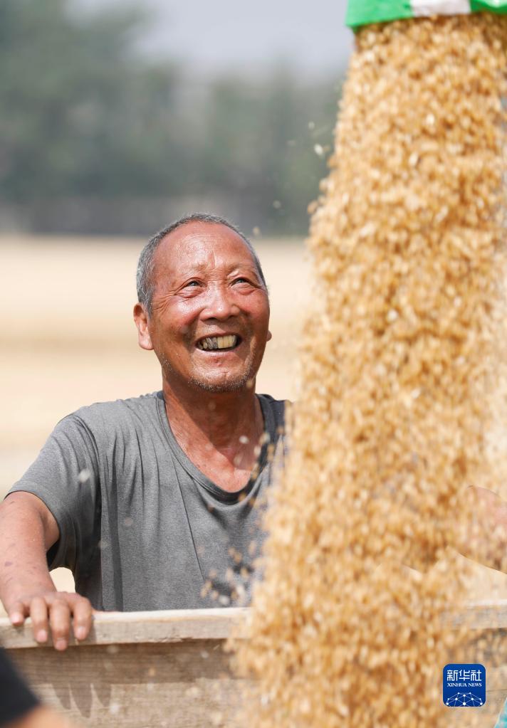 5月29日,在河南省平顶山市宝丰县肖旗乡白庄村麦田里,村民在收获小麦。