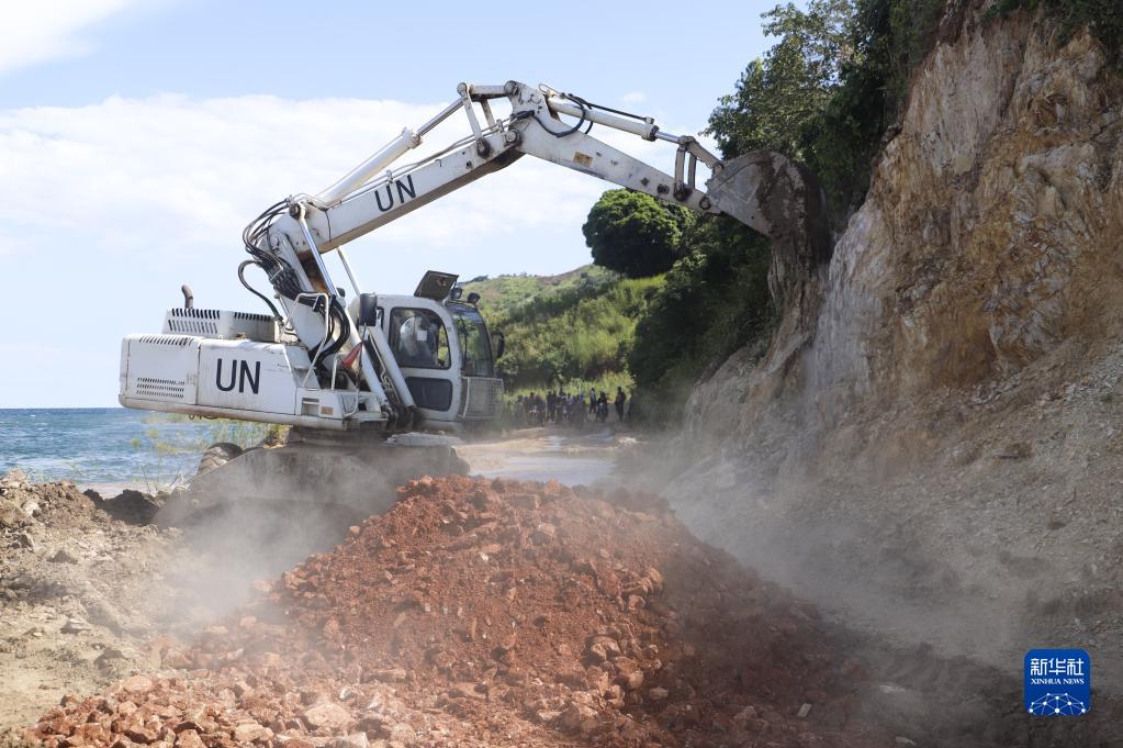 3月23日,中国第25批赴刚果(金)维和工兵分队官兵在刚果(金)巴拉卡分遣点执行道路抢修任务。新华社发