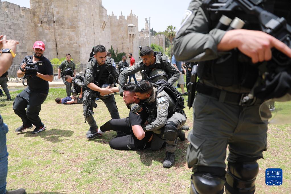 5月29日,在耶路撒冷举行的“耶路撒冷日”游行期间,抗议者与以色列警察发生冲突。 新华社/基尼图片社