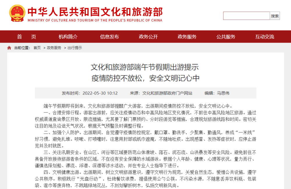 原标题:文化和旅游部端午节假期出游提示