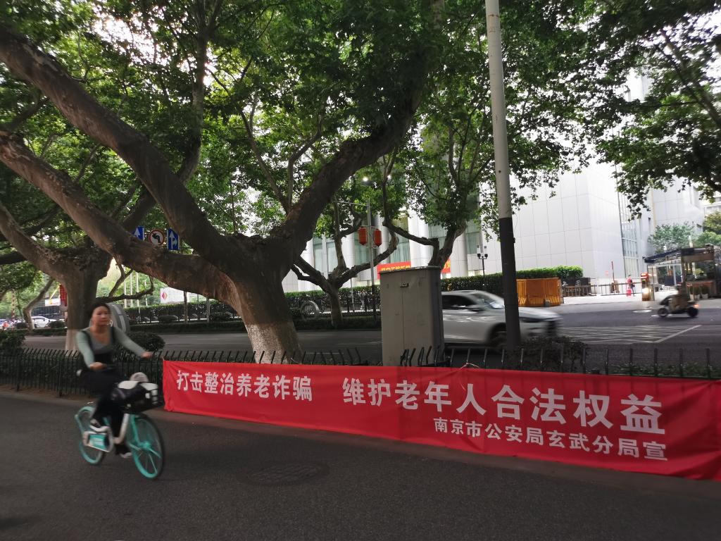 南京街头随处可见的宣传防范养老诈骗标语。新华社记者 段羡菊摄