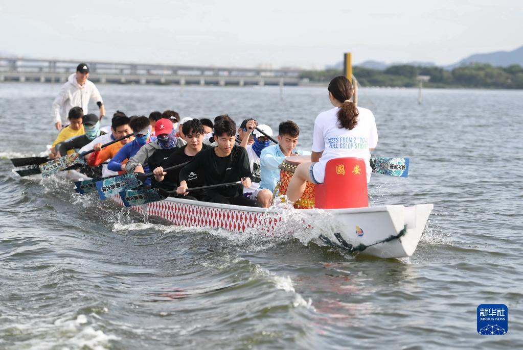 5月30日,集美大学海峡龙舟队在厦门市水上运动中心训练。新华社记者 林善传 摄