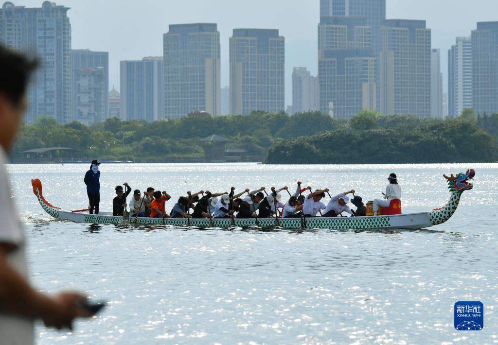 5月30日,在厦门市水上运动中心,集美大学男子龙舟队在进行训练。新华社记者 魏培全 摄