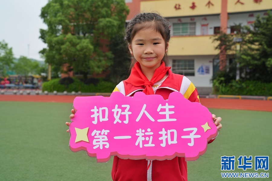 在江西省萍乡市芦溪县源南学校,一年级的孩子们戴上红领巾,光荣加入中国少年先锋队。新华网发 王强摄