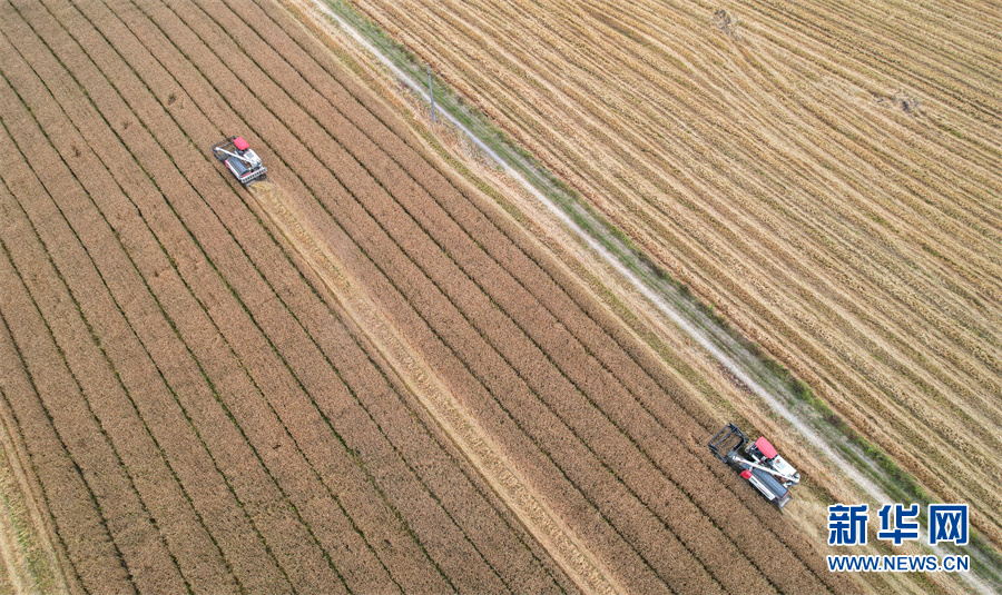 安徽省铜陵市今年小麦播种面积为22.6万亩,目前小麦陆续进入成熟期,田间地头到处是一派繁忙景象。近年来,当地加大农业新品种、新技术的推广应用,积极探索土地“轮耕轮作”方式,让有限的土地资源得到高效利用,促进农民增收,助推乡村振兴。新华网发(陈磊 摄)