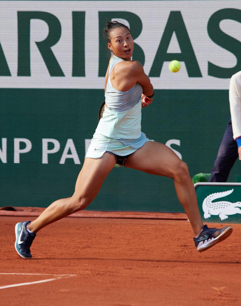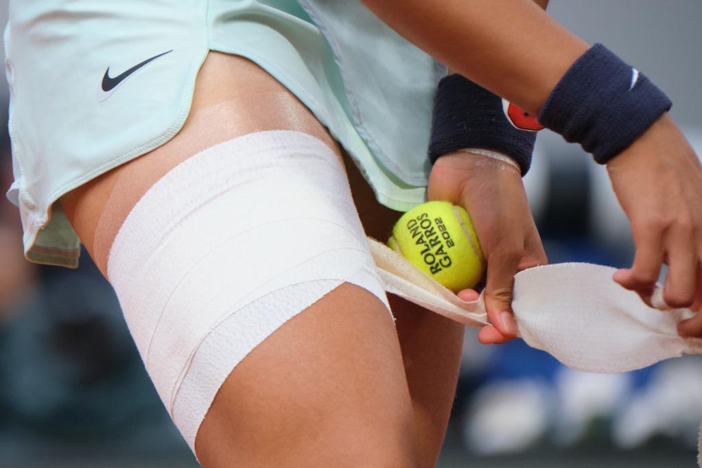 在罗兰·加洛斯最大的中央球场菲利普球场上,一边是中国“小花”郑钦文,一边是世界第一、已经连胜31场的斯维亚特克;战至决胜盘,郑钦文突然做了个大胆的决定,拆下几十分钟前在医疗暂停时绑到腿上的绷带,转身走向球场,继续投入战斗。