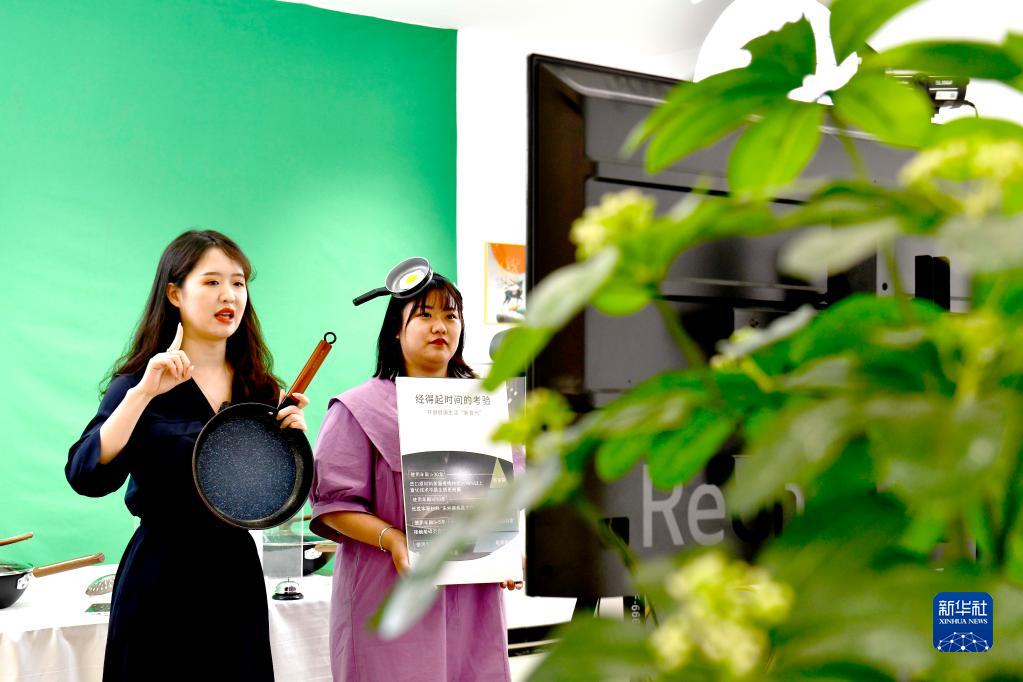 5月17日,在临沂跨境电商直播基地,主播在直播带货。新华社记者 郭绪雷 摄