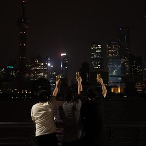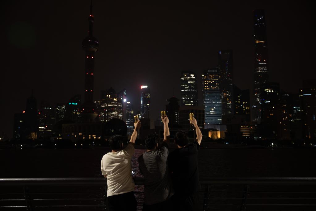 在上海经商多年的郑志式夫妻与朋友特意带着啤酒来外滩庆祝,郑志式是温州人,在南京东路做小吃生意,他说:“我们要抓紧复工复产了。”1日凌晨1点,外滩江堤仍有不少游客流连忘返。