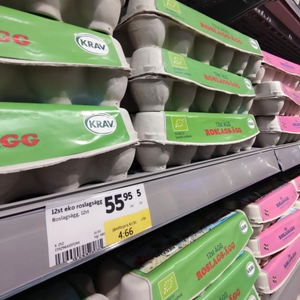 这是4月14日在瑞典斯德哥尔摩一家超市内拍摄的鸡蛋。新华社发(魏学超 摄)