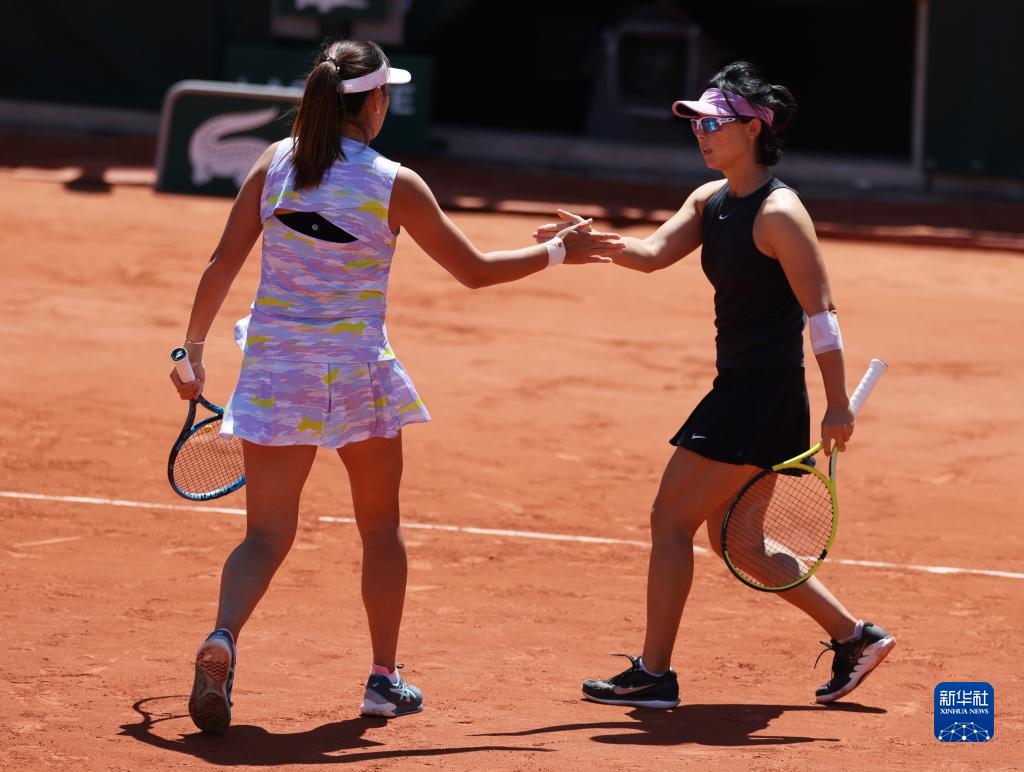 6月1日,加西亚(左)/梅拉德诺维奇在比赛中。新华社记者 高静 摄