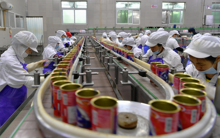 图为工人在泉州石狮一家水产品加工企业的生产线上赶制出口东南亚的罐头订单(5月13日摄)。新华社记者魏培全 摄