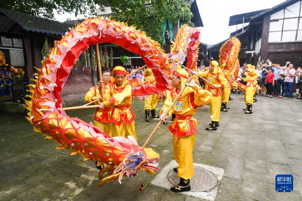 这是6月3日在重庆市永川区板桥老街拍摄的民俗表演现场。