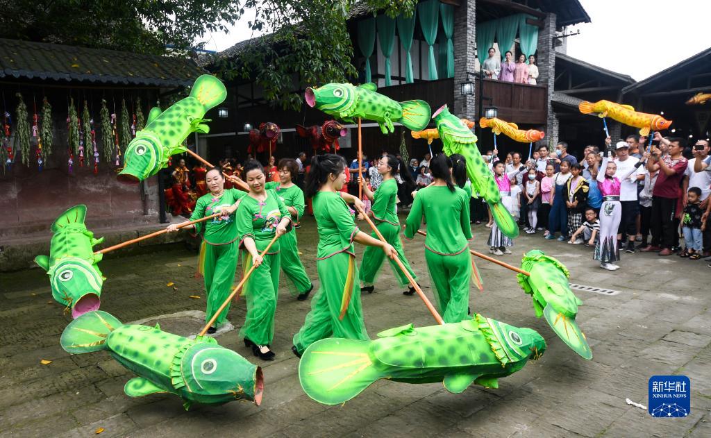 这是6月3日在重庆市永川区板桥老街拍摄的民俗表演现场。