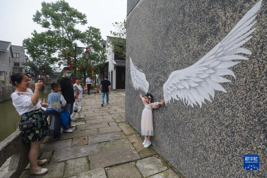 6月3日,游客在杭州市余杭区瓶窑老街拍照留影。