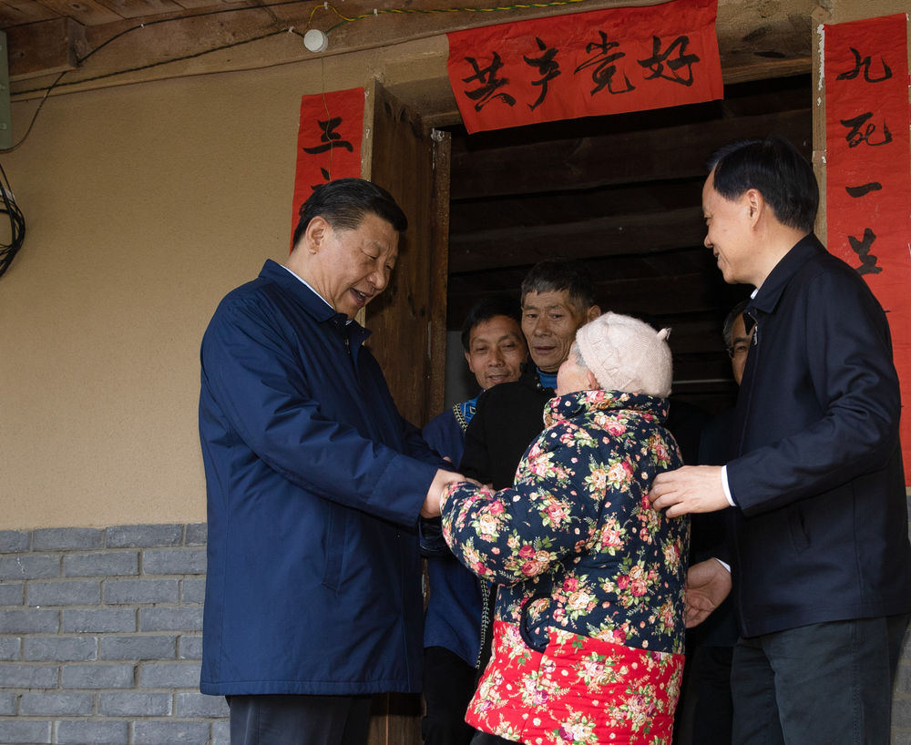 2019年4月15日,在重庆石柱土家族自治县中益乡华溪村,习近平来到贫困户谭登周家。谭登周老两口2018年因病因伤返贫,总书记和他们一起算起了收入账和医疗账:“低保补助有多少?”“土地流转一年收入多少?”“医药费花了多少?报销了多少?”