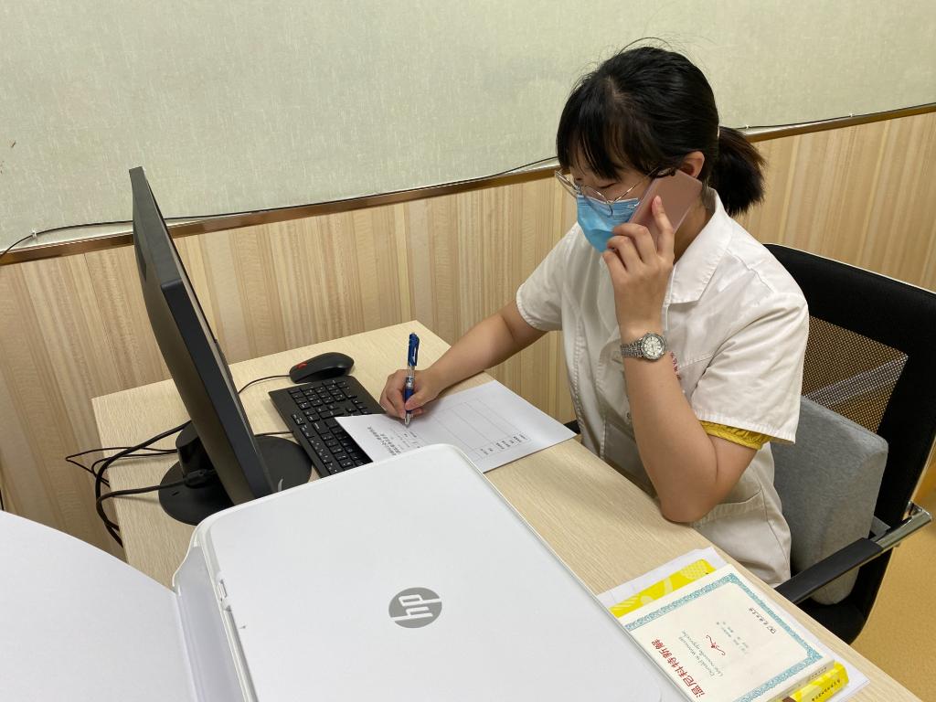 李晶晶在接听“中高考心理援助热线”。(受访对象供图)