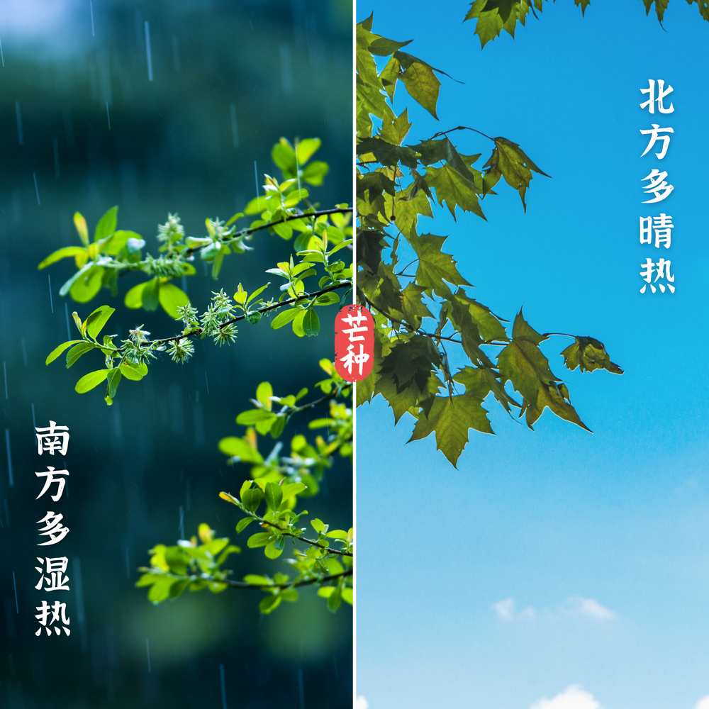 芒种至,仲夏始。“芒种”标志着仲夏到来,此时,南方多湿热,北方则多晴热,华南地区东南季风雨带稳定,江南地区进入梅雨,西南地区从6月份也开始进入了一年中多雨的季节。