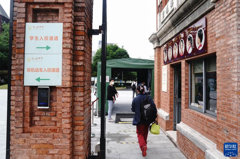 6月6日,上海市徐汇中学的学生走进校园。新华社记者 丁汀 摄