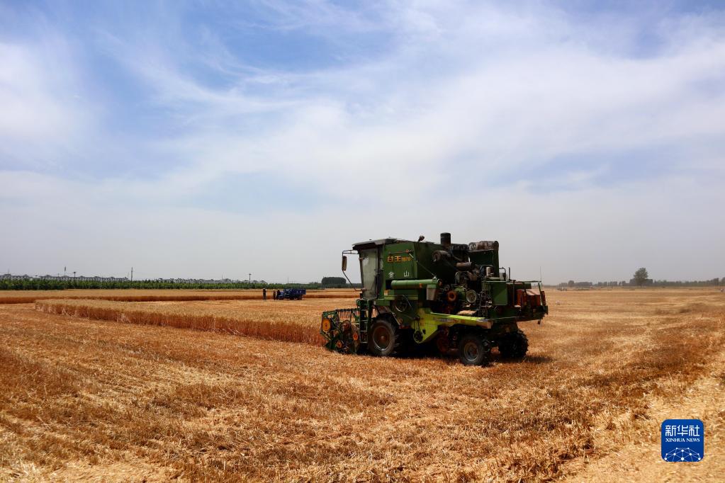 近日,黄河山东段两岸种植的小麦大面积成熟,农民抓住天气晴好的有利时机抢收小麦,确保颗粒归仓。