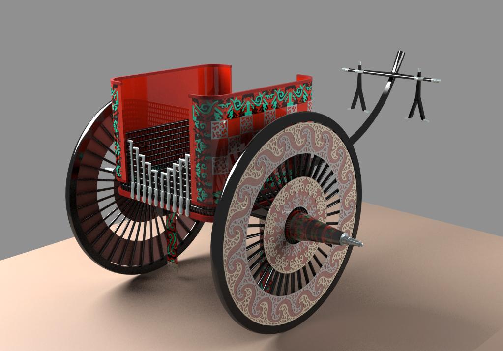 马家塬14号墓地的马车复原图(甘肃省文物考古研究所供图)