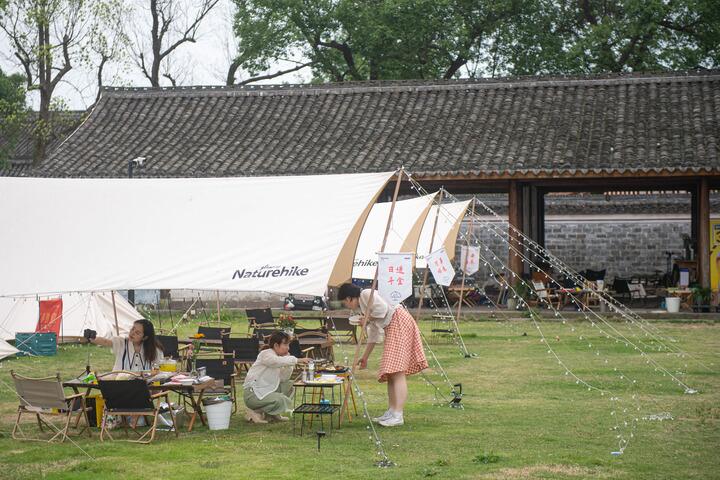 5月19日,浙江宁波江北区慈城镇一处露营地。“露营热”带动露营经济与户外用品产业快速发展。新华社记者江汉 摄