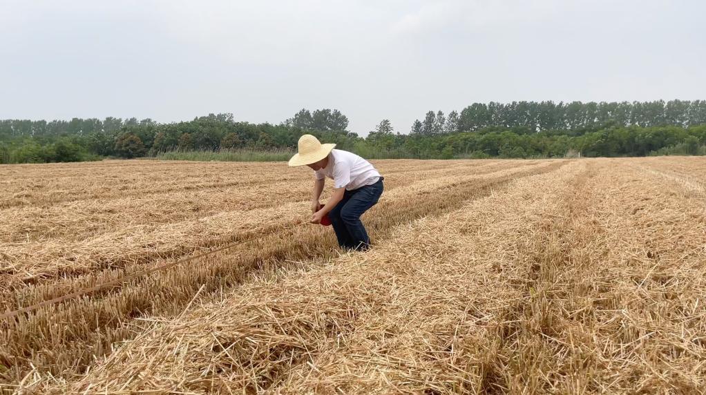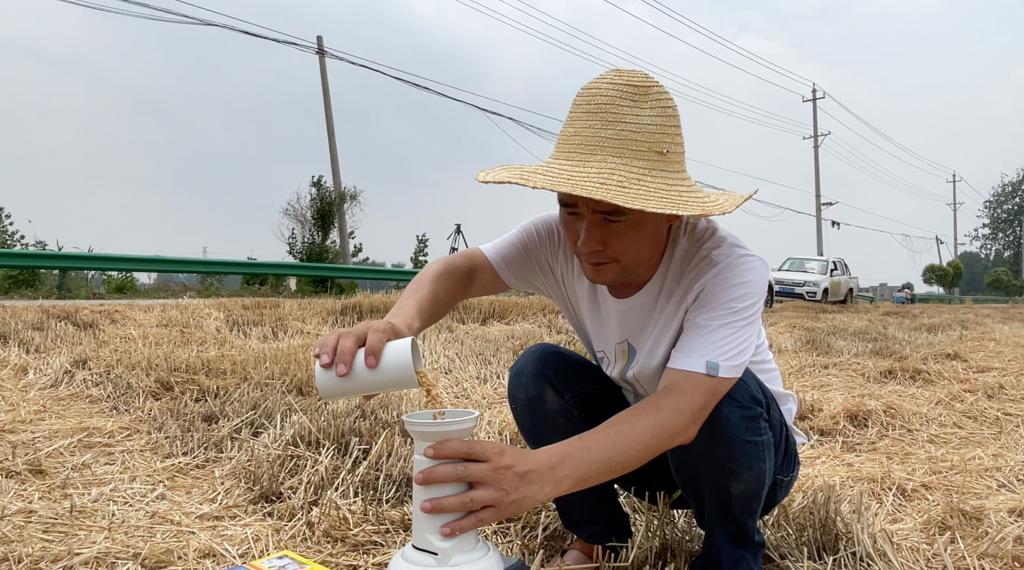 6月3日,科研人员在阜阳市颍泉区伍明镇对“阜航麦1号”小麦进行实打验收。(受访者供图)