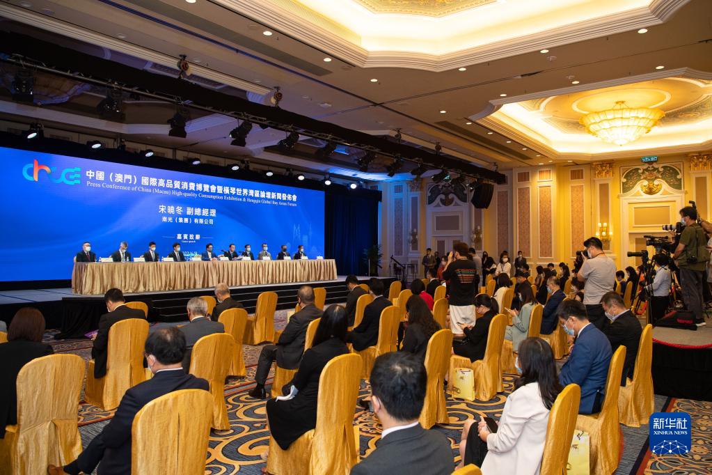 这是6月9日拍摄的首届“中国(澳门)国际高品质消费博览会暨横琴世界湾区论坛”新闻发布会现场。新华社记者 张金加 摄