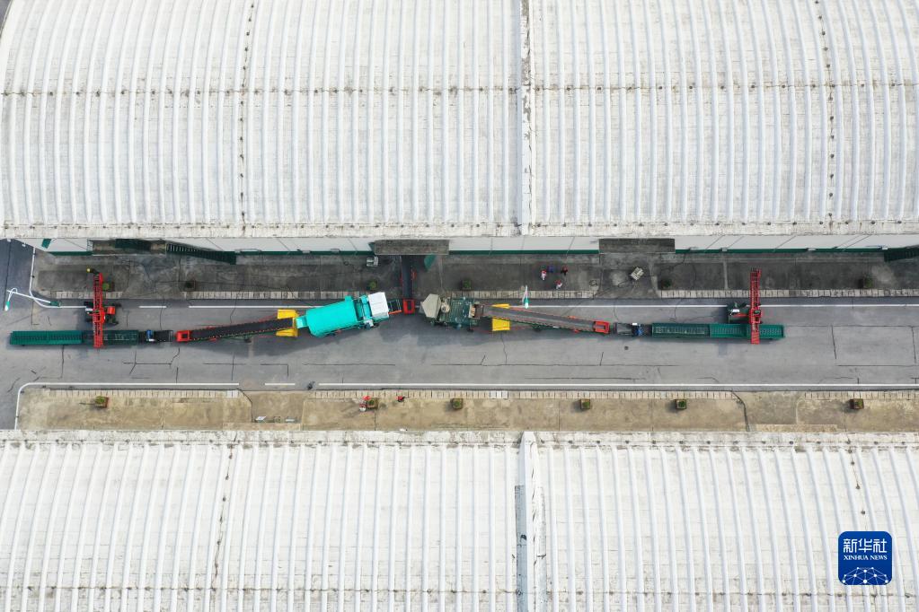 5月24日,在中央储备粮邓州直属库有限公司内,粮食入库全套流程设备已架设完毕(无人机照片)。新华社记者 张浩然 摄