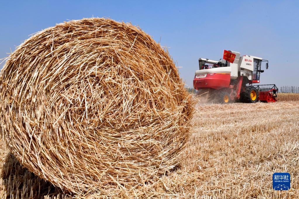6月2日,在山东省郯城县郯城街道,农民驾驶农机收获小麦。新华社记者 郭绪雷 摄