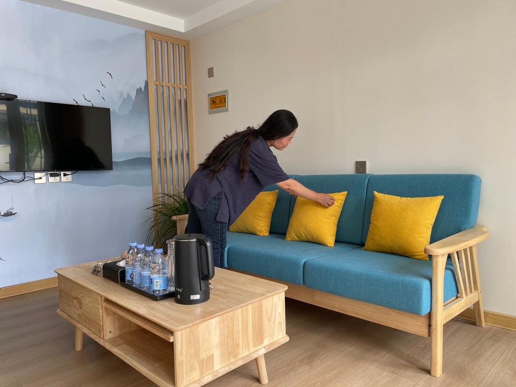 黄湾村民宿管家在布置客房。受访者供图