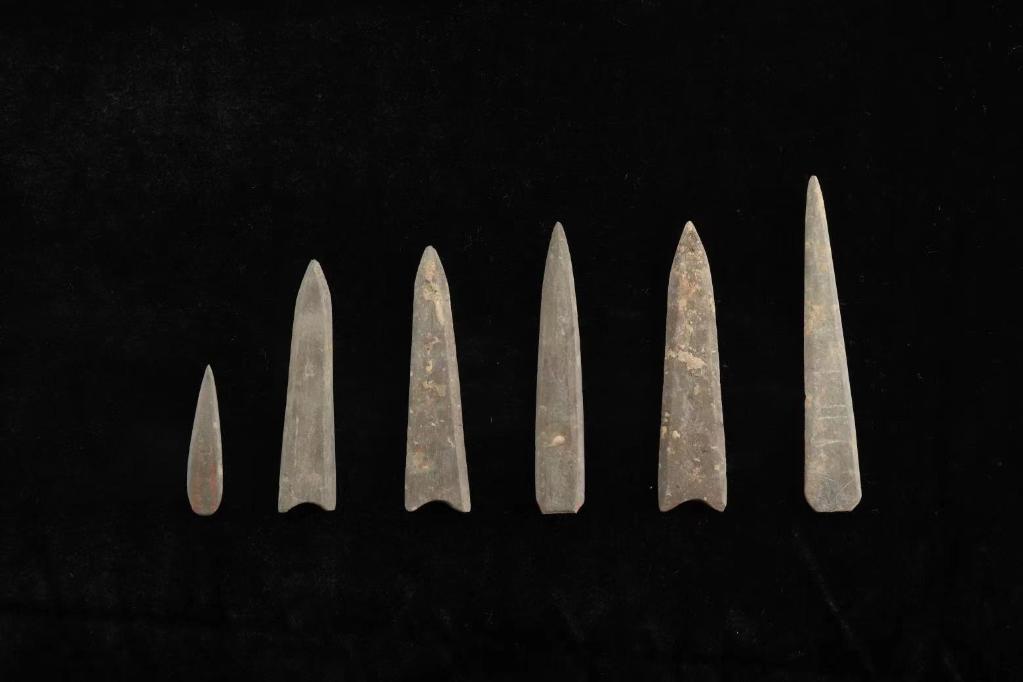 这是甘肃庆阳南佐遗址出土的涂有朱砂的石镞。
