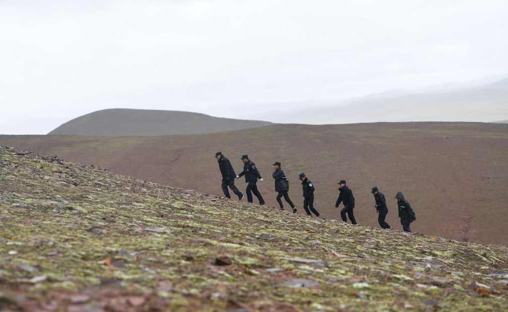 巡山队员在被称为“藏羚羊产房”的可可西里卓乃湖区域巡山。新华社记者 薛玉斌 摄
