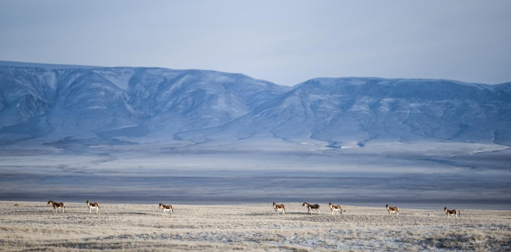 藏野驴在可可西里地区活动。新华社记者 吴刚 摄