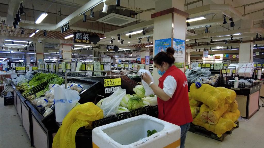 超市工作人员根据市民在网上下的订单进行配货。(图片由采访对象提供)