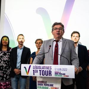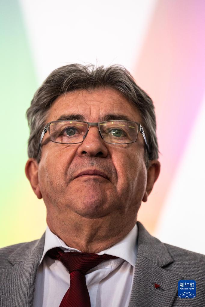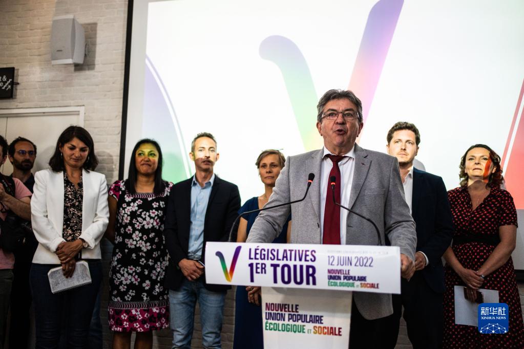 6月12日,法国极左翼政党“不屈法国”领导人梅朗雄在巴黎参加选后集会。新华社发(何塞·博萨斯摄)