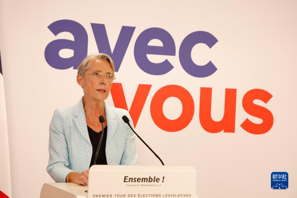 6月12日,法国总理伊丽莎白·博尔内在巴黎参加选后集会。新华社发(何塞·博萨斯摄)