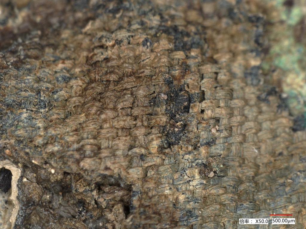 “三星堆库房里面还有大量青铜器包块,这些青铜器包块明显被焚烧过,在这个包块上面也找到了丝。这是非常明显的丝绸,看得非常清楚,平纹的致密的丝绸。我相信当时这块丝绸是非常厚实的,并且颜色鲜亮。”周旸说。