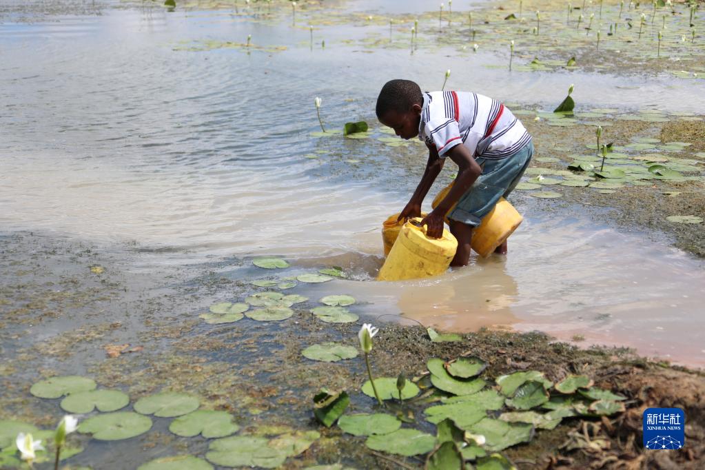 这张3月23日拍摄的照片显示,在遭受旱灾的肯尼亚基利菲郡村庄,一名男孩从储水设施中取水。