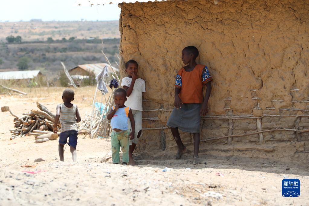 这是3月23日拍摄的遭受旱灾的肯尼亚基利菲郡村庄中的儿童。