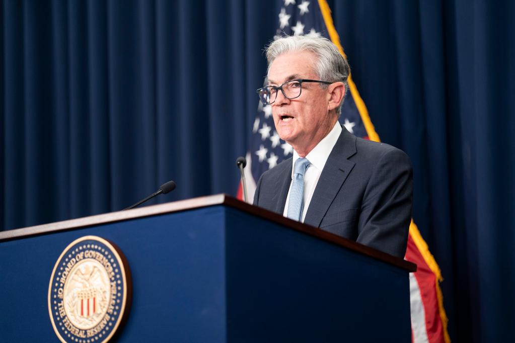 6月15日,在美国首都华盛顿,美联储主席鲍威尔在新闻发布会上讲话。(新华社记者刘杰 摄)