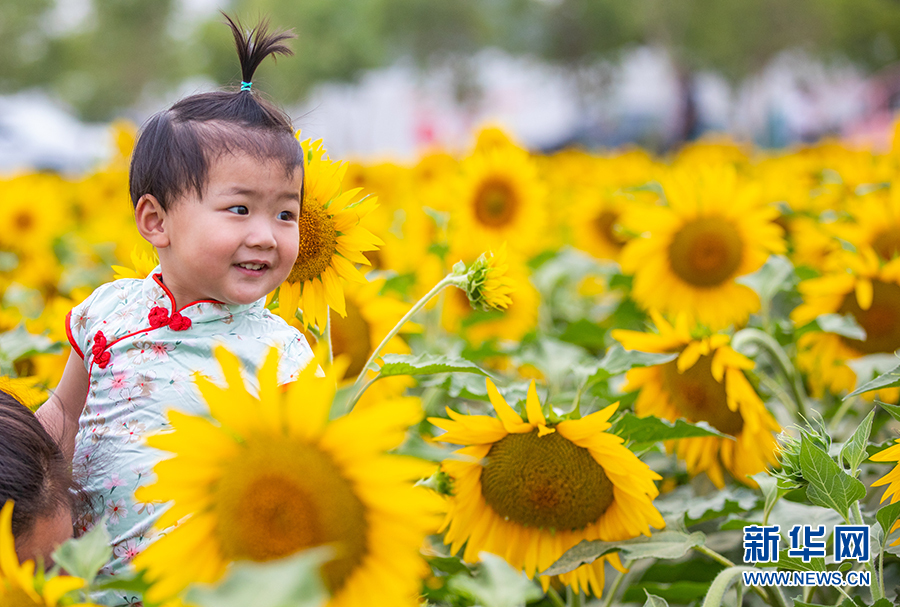 仲夏时节,安徽省淮北市相山区渠沟镇张楼村600余亩向日葵竞相开放,吸引游客前来观赏。