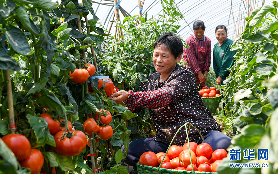 6月16日,农民在安徽省铜陵市义安区老洲乡尚诚种植专业合作社采摘西红柿。