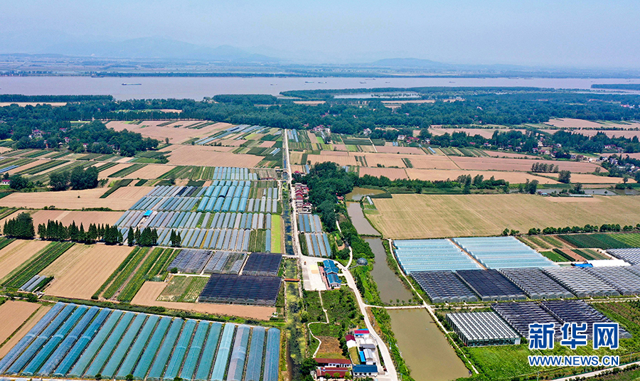 6月16日拍摄的安徽省铜陵市义安区老洲乡尚诚种植专业合作社蔬菜种植大棚。