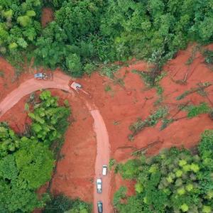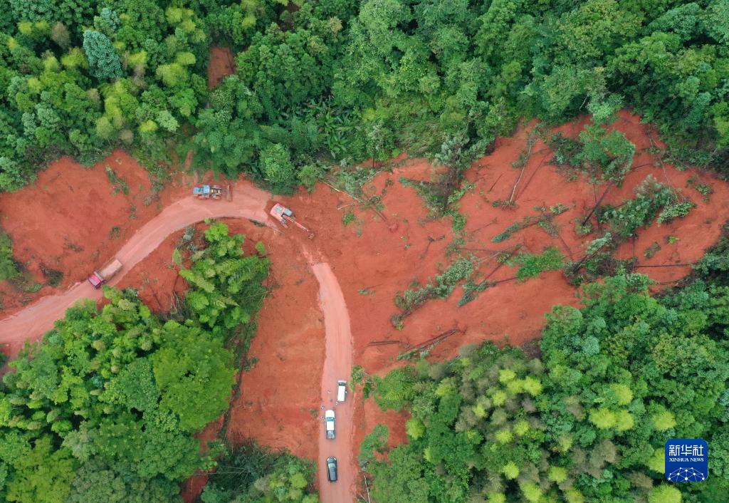 这是永安市洪田镇马洪村附近的山路抢通现场(6月17日摄,无人机照片)。