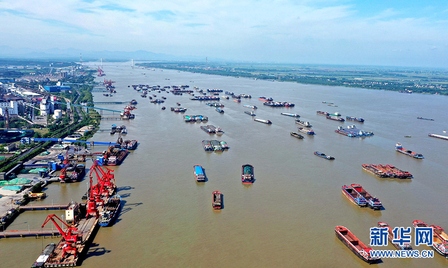 今年以来,安徽铜陵港充分发挥长江“黄金水道”优势,在做好疫情防控的同时,不断优化水路与铁路、公路多式联运,进一步加强地区与长三角、珠三角地区合作。前5个月,铜陵港完成吞吐量3151.07万吨,比去年同期增长7.53%,为重点物资运输、企业复工复产打下了坚实基础。新华网发(过仕宁 摄)