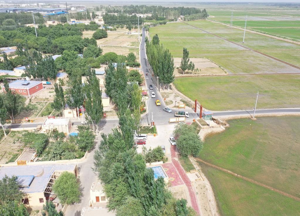 2022年6月,夏日里的新疆和田县稻香村局部航拍景象。