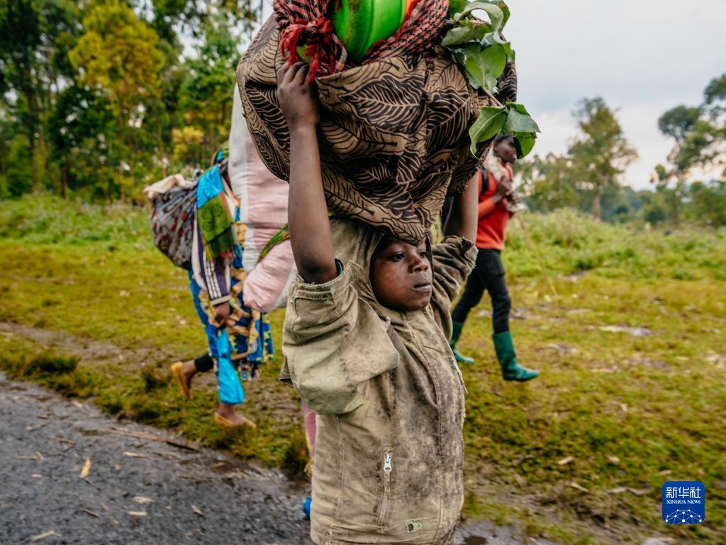 5月25日,在刚果(金)北基伍省首府戈马市附近,平民因战乱逃离家园。近期,反政府武装“M23运动”的武装成员在刚果(金)北基伍省多个地区与政府军交火,大量平民因战乱逃离家园。