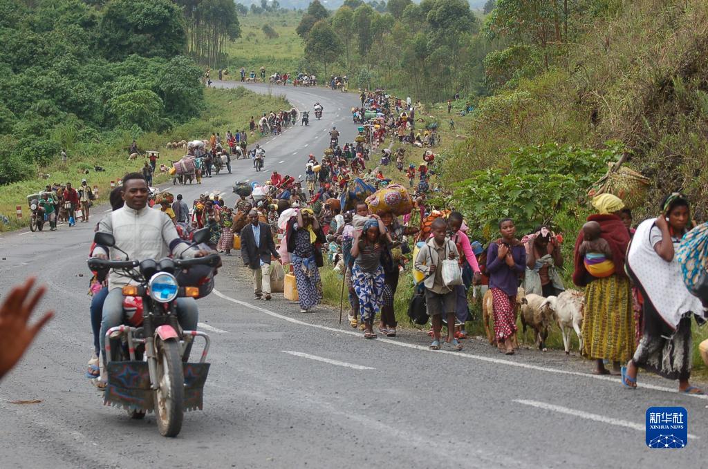 5月24日,在刚果(金)北基伍省首府戈马市附近,平民因战乱逃离家园。近期,反政府武装“M23运动”的武装成员在刚果(金)北基伍省多个地区与政府军交火,大量平民因战乱逃离家园。