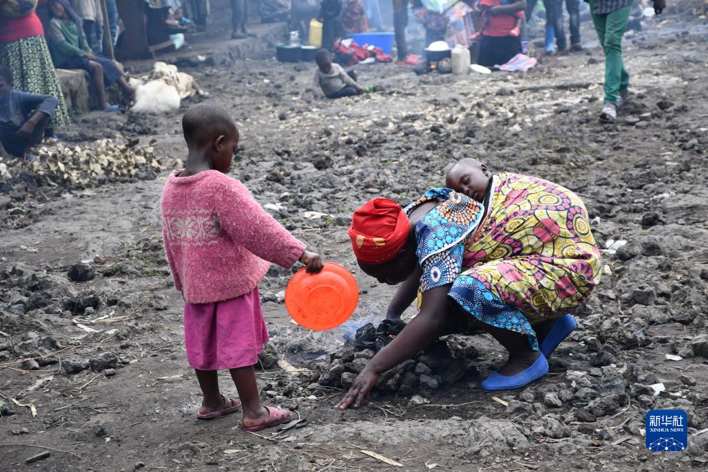 5月31日,在刚果(金)基本巴,因战乱逃离家园的平民在一处营地生火。近期,反政府武装“M23运动”的武装成员在刚果(金)北基伍省多个地区与政府军交火,大量平民因战乱逃离家园。